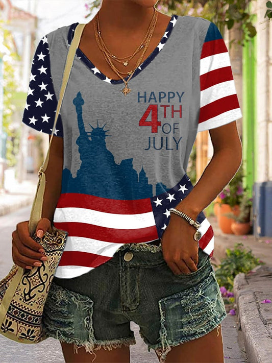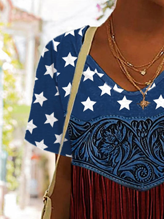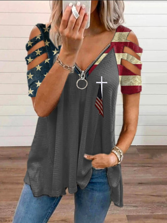 🔥Last Day 49% Off🔥Women'S Flag Cross Print V-Neck Top