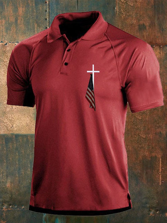 🔥Buy 3 Get 10% Off🔥Men's Flag Cross Print Polo Shirt