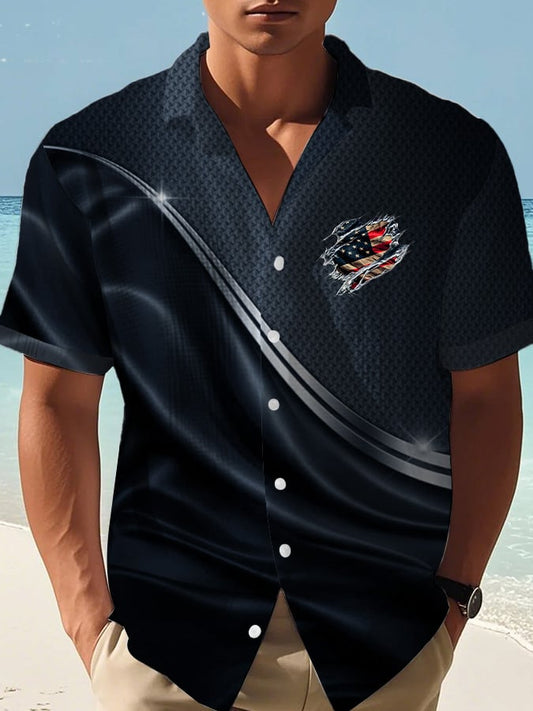 Men's Casual American Flag Cross Graphic Polo Shirt