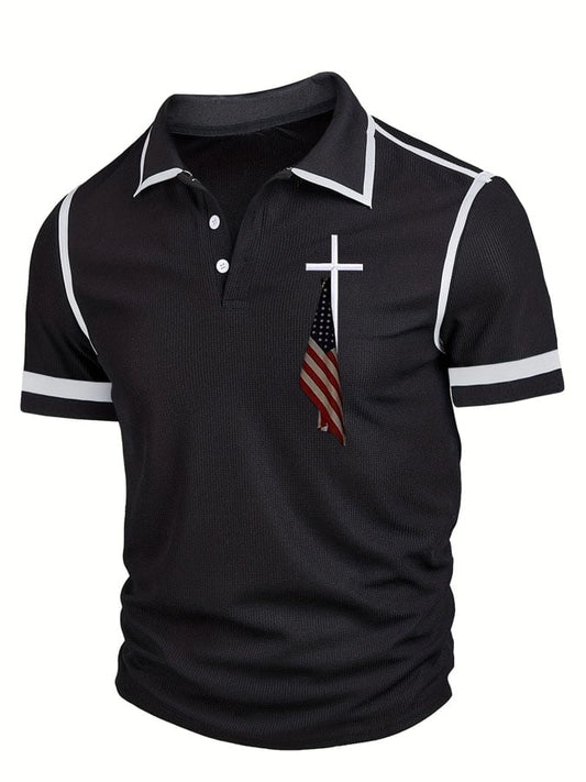 Men's Flag Cross Print Waffle Polo Shirt
