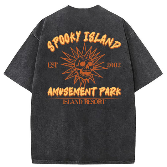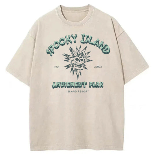 Spooky Island Cartoon Halloween Washed Cotton T-Shirt