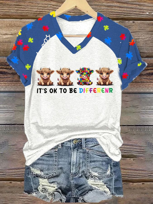 Women's Autism Awareness Printed Casual V-Neck T-Shirt