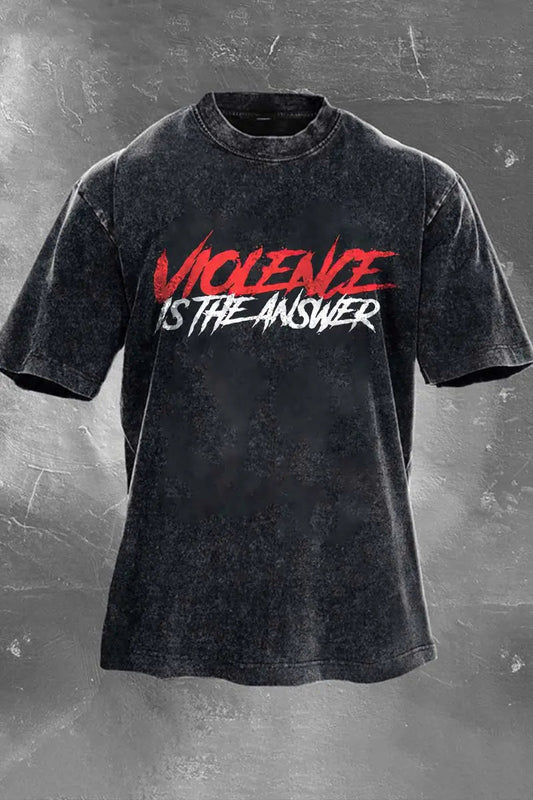 Violence Is The Answer Printed Men's Washed T-Shirt