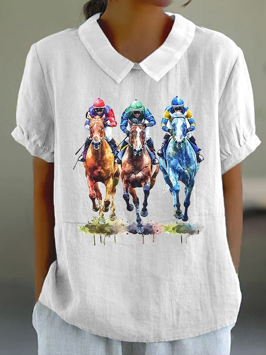 Women's Horse Racing Printed Doll Collar Casual Shirt