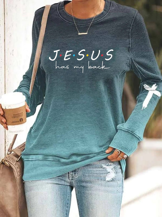 Women's Jesus Has My Back Print Casual Sweatshirt