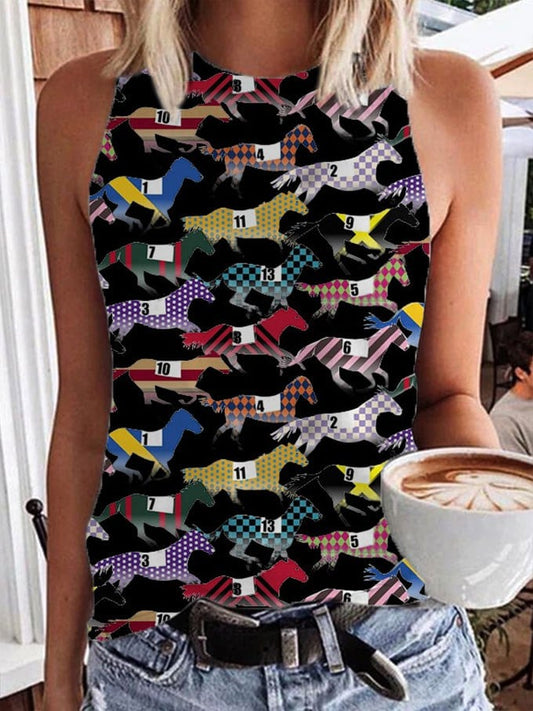 Women's Racing Horses Kenturky Print V-Neck T-Shirt