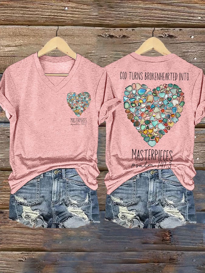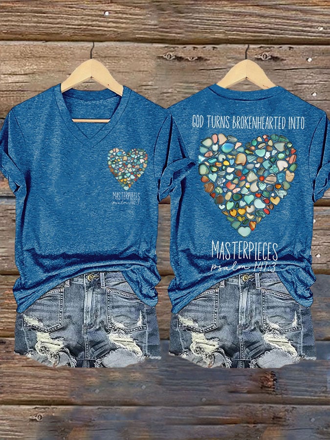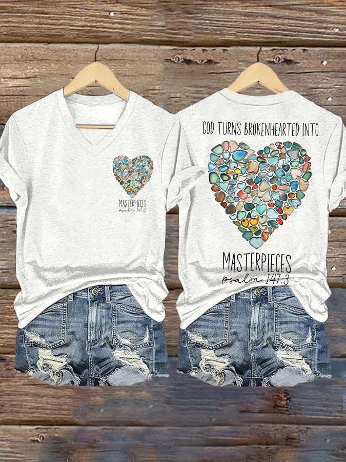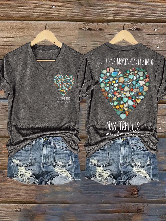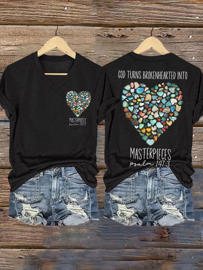 God Turns Brokenhearted into Masterpieces Psalm 147:3 Print T-shirt