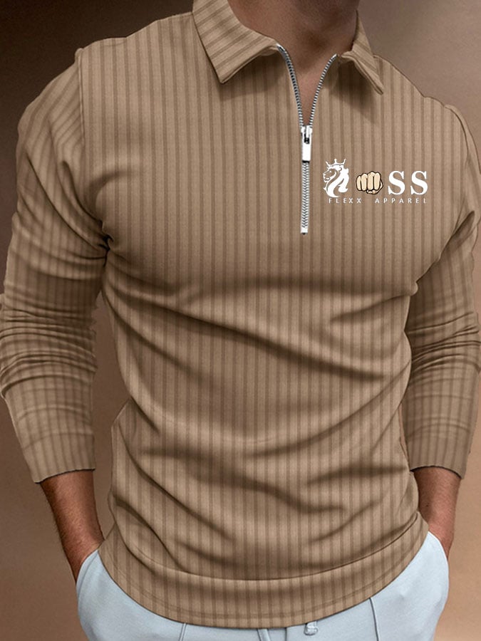 Men's Letter Stripe Printed Pullover Casual Polo Shirt