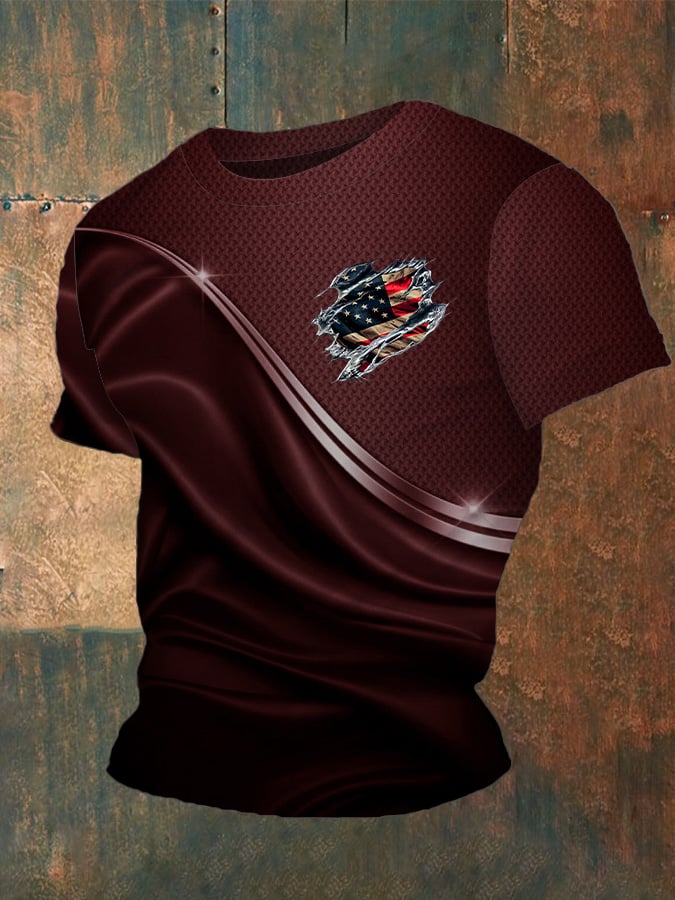 Men's Independence Day Flag Print Crew Neck T-Shirt