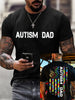 Men's Retro Autistic Dad Autism Awareness Printed Round Neck T-Shirt