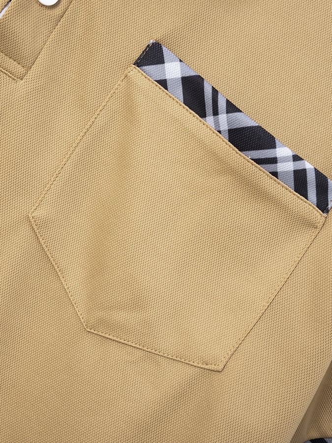 Men's Retro Plaid Stitching Fashion Casual Polo Shirt (With Pockets)
