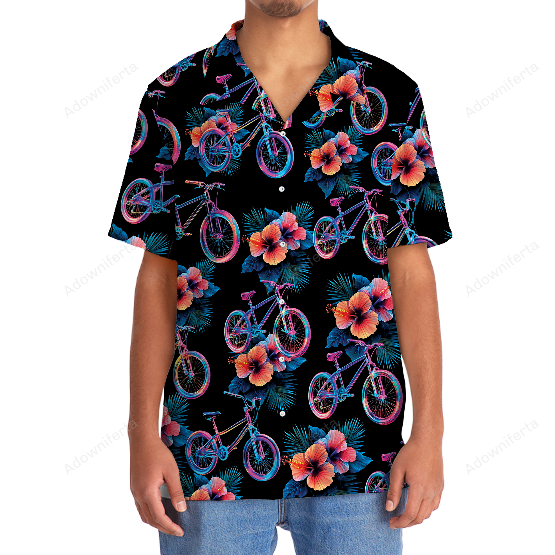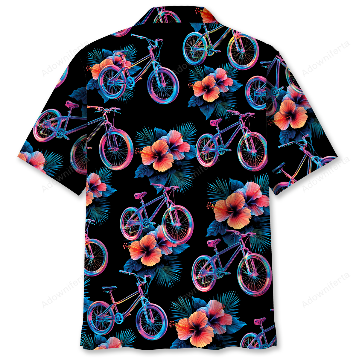 Mountain Bike Hibiscus Hologram Hawaiian Shirt