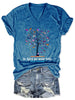 V-neck Butterfly Tree Autism Awareness In April We Wear Blue Print T-Shirt
