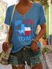 V-Neck Retro Texas Strong God Bless Texas Print T-Shirt
