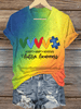 Women's Autism Awareness“Autism Accept Adapt Advocate” Print Contrast T-shirt