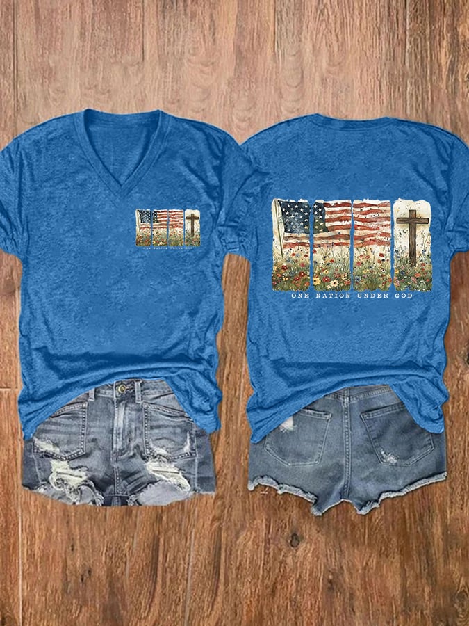 Women'S Casual One Nation Under God Faith Graphic Print Short Sleeve T-Shirt