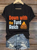 Women's Down With The Turd Reich Printed V-Neck T-Shirt