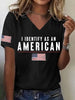 Women's I Identify As An American Print V Neck T-shirt