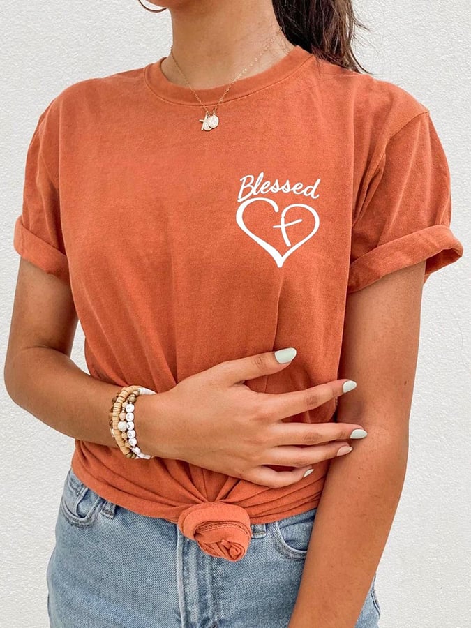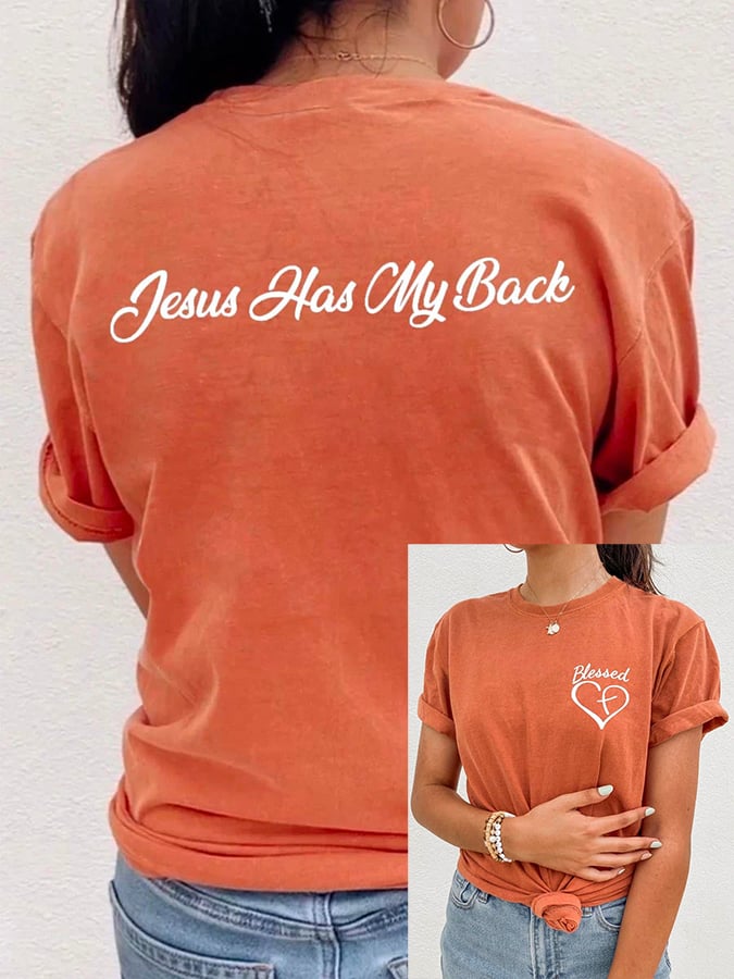 Women's Jesus Has My Back, Blessed Heart Cross T-shirt