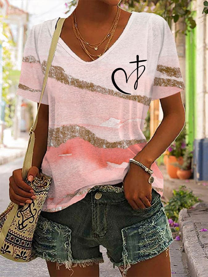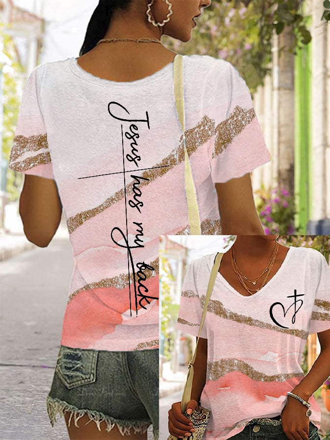 Women's Jesus has my back printed casual V-neck T-shirt