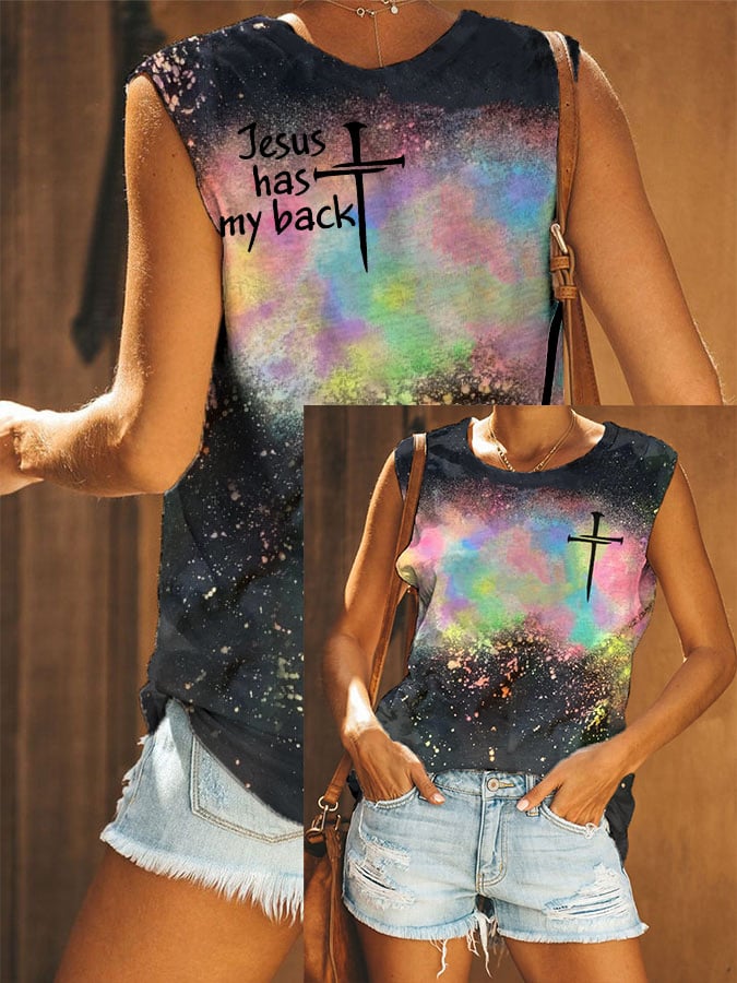 Women's Jesus Has My Back Tie-dye Sleeveless T-Shirt