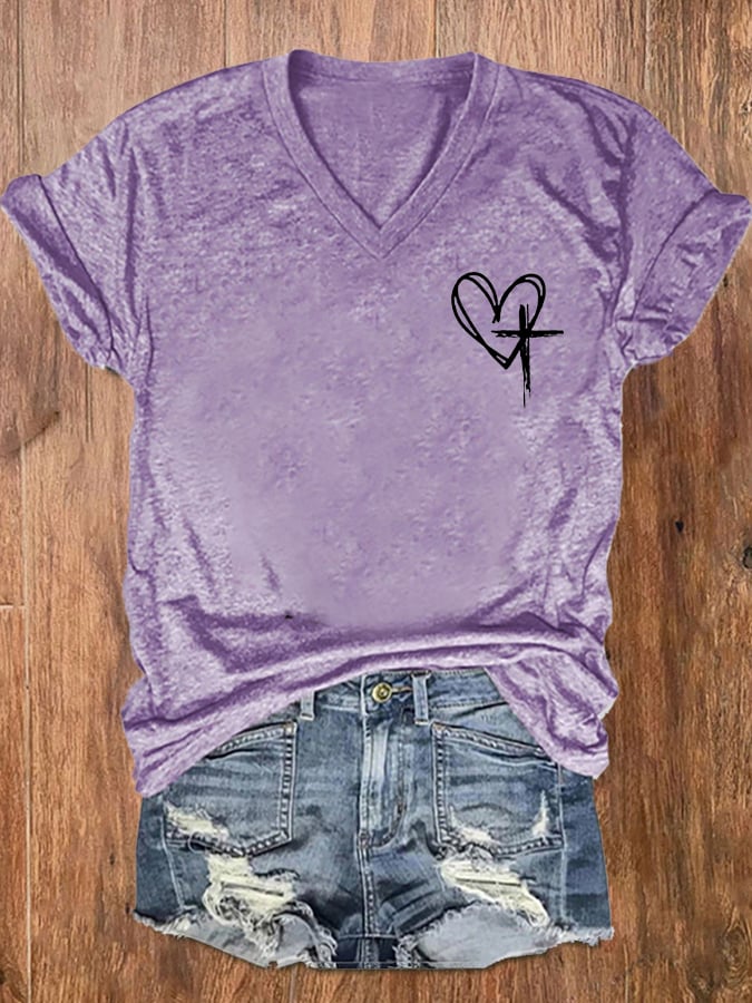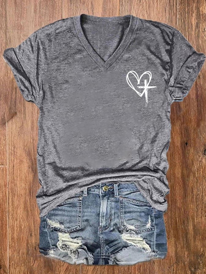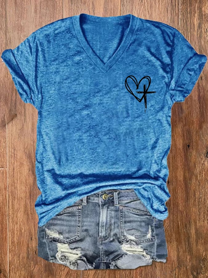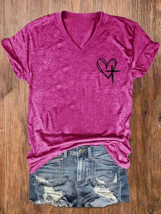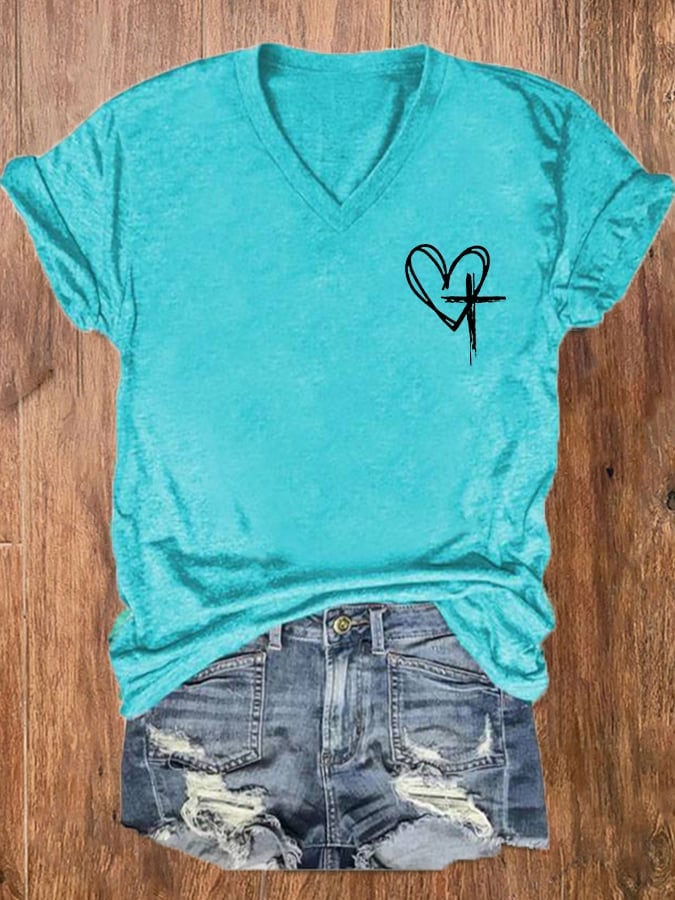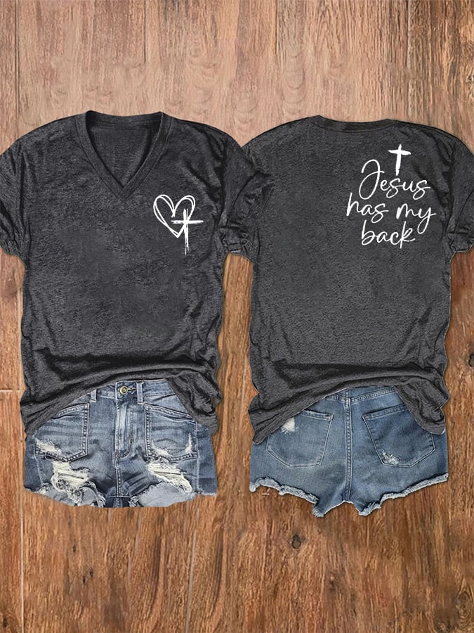 Women's Love Like Jesus Jesus Has My Back Print V-Neck T-Shirt