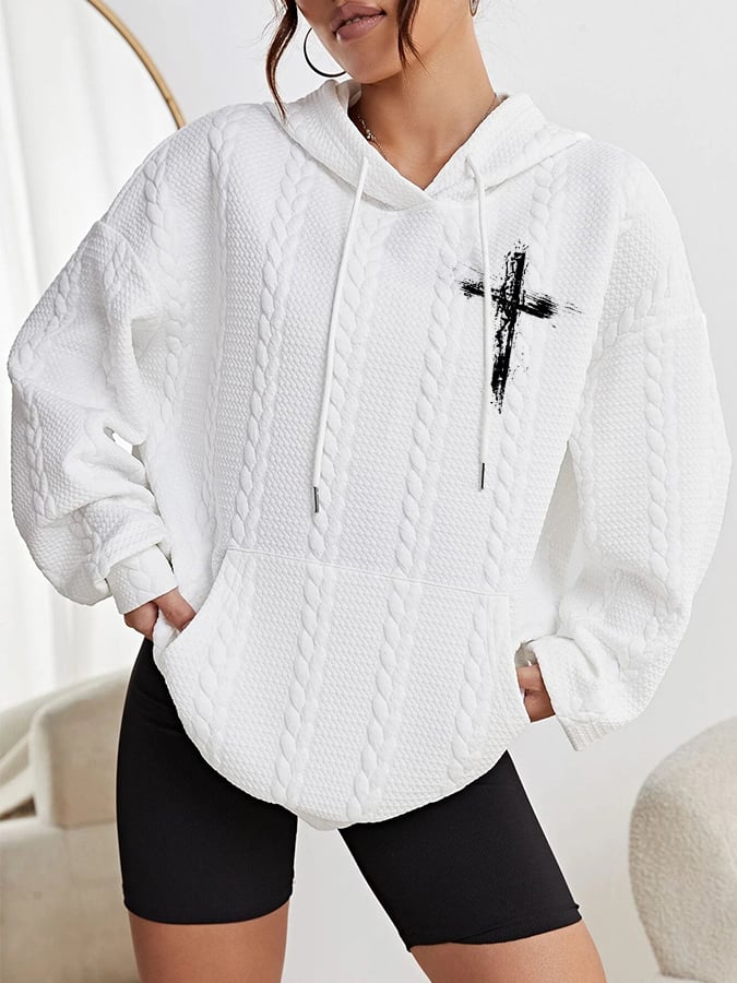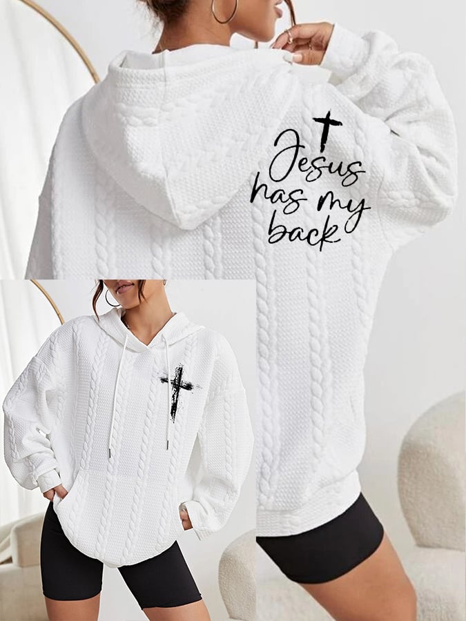 Women's Love Like Jesus Jesus Has My Back Printed Casual Cable Hoodie