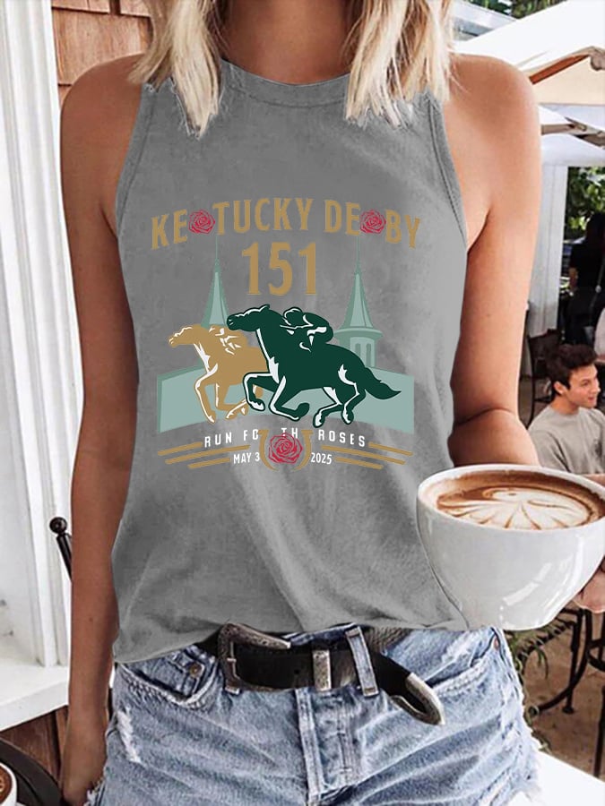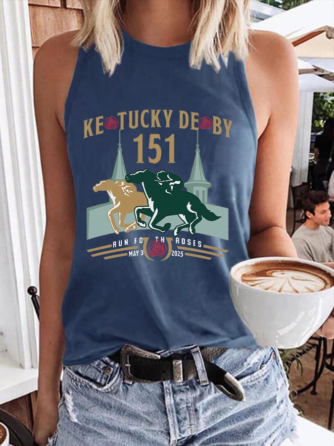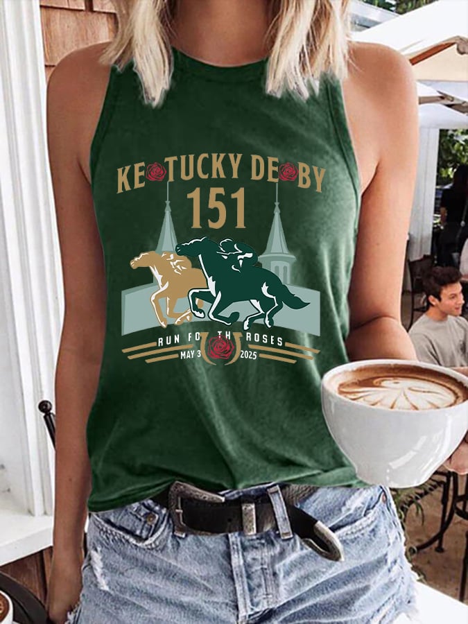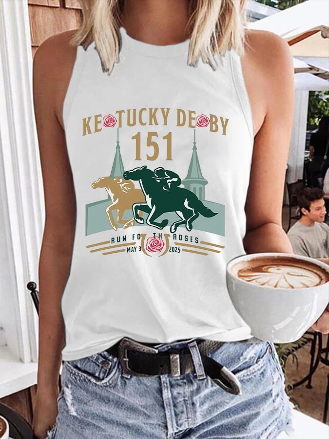 Women's Retro 151st Kentucky Derby 2025 Horse Racing Fans Print Tank Top