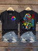 Women’s Retro Accept Understand Love Autism Awareness Print Short Sleeve Casual T-Shirt