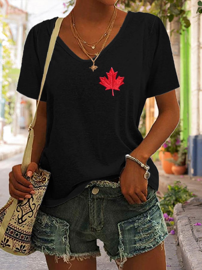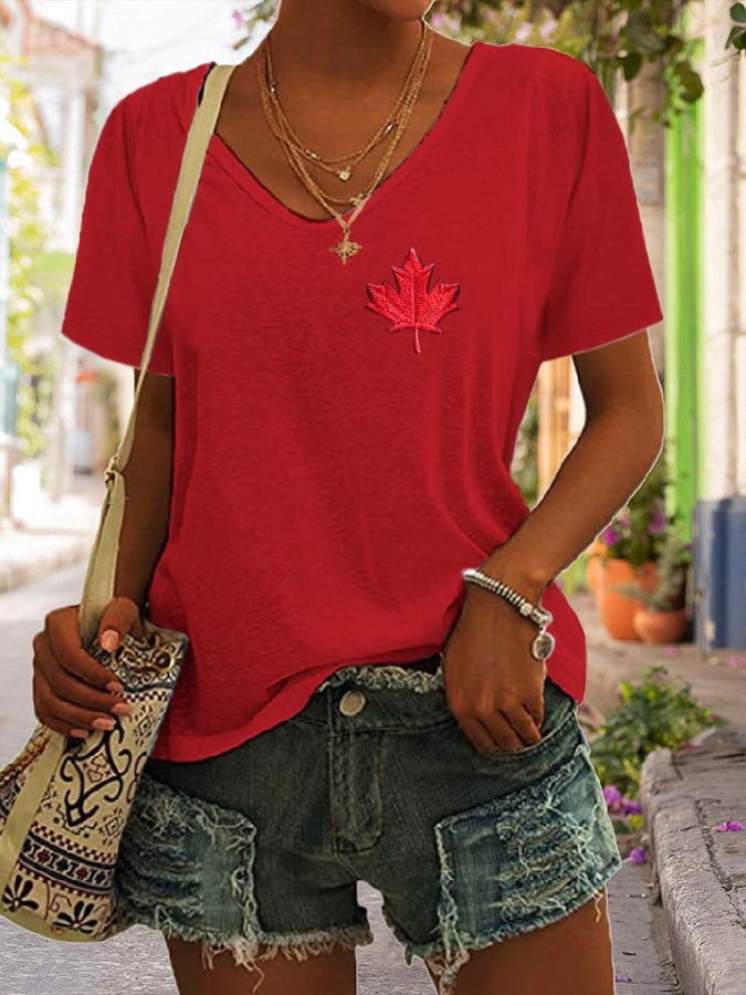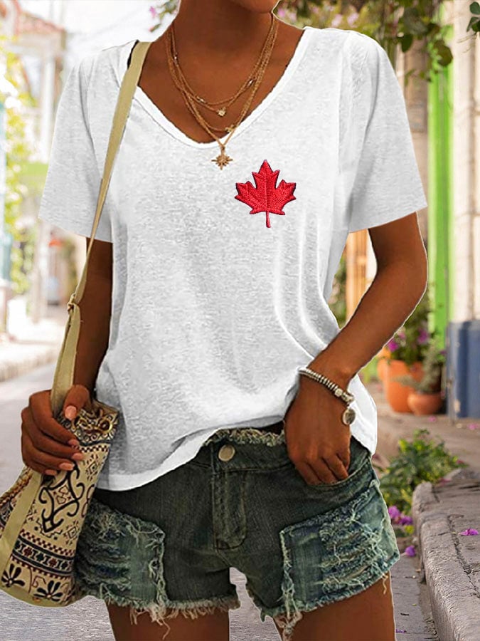 Women's Retro Canadian Maple Leaf Print Casual T-Shirts