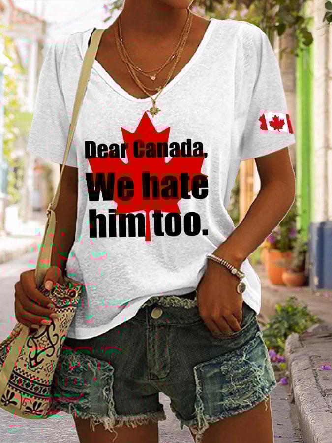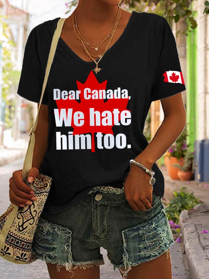 Women's Retro Dear Canada We Hate Him Too Print T-Shirt