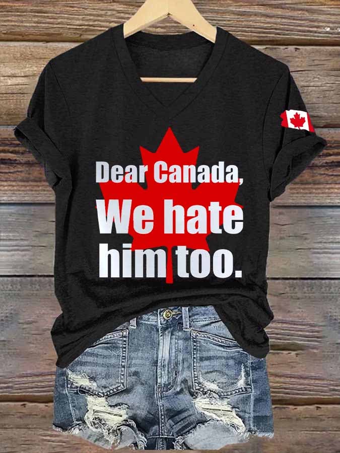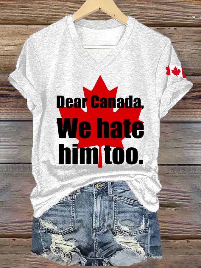 Women's Retro Dear Canada We Hate Him Too Print T-Shirt