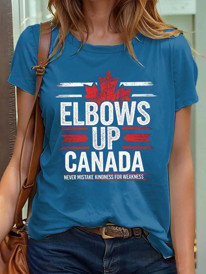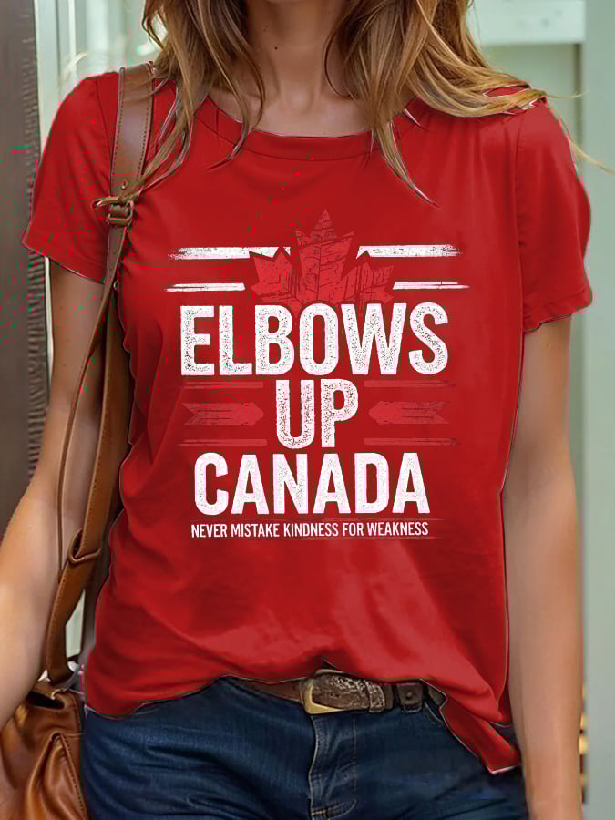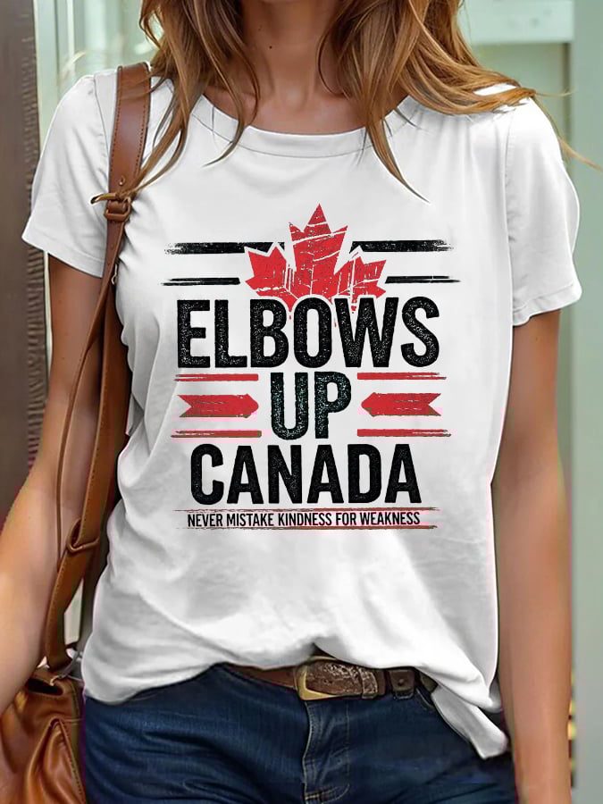 Women's Retro Elbows Up Canada Never Mistake Kindness For Weakness Print T-Shirt