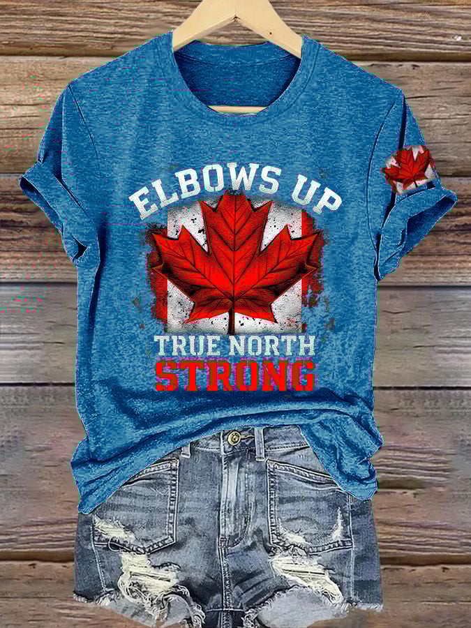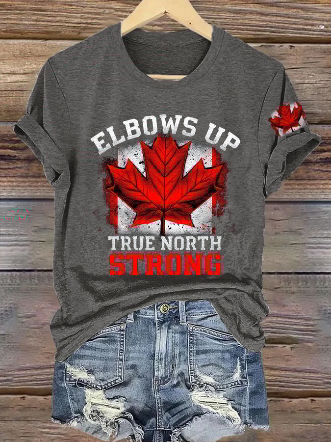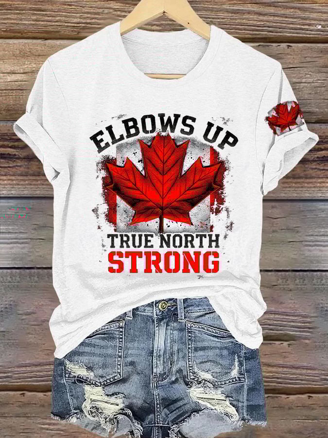 Women's Retro Elbows Up True North Strong Print T-Shirt