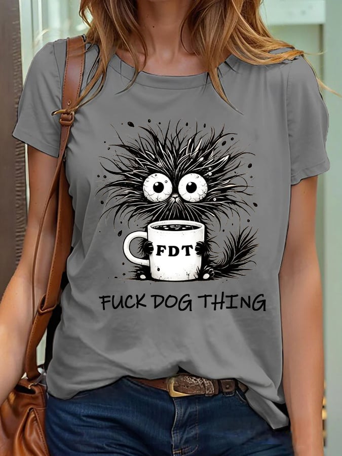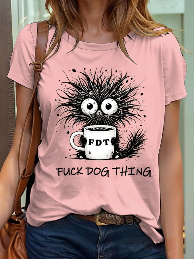 Women's Retro Fuck Dog Thing Printed Short-Sleeved T-Shirt