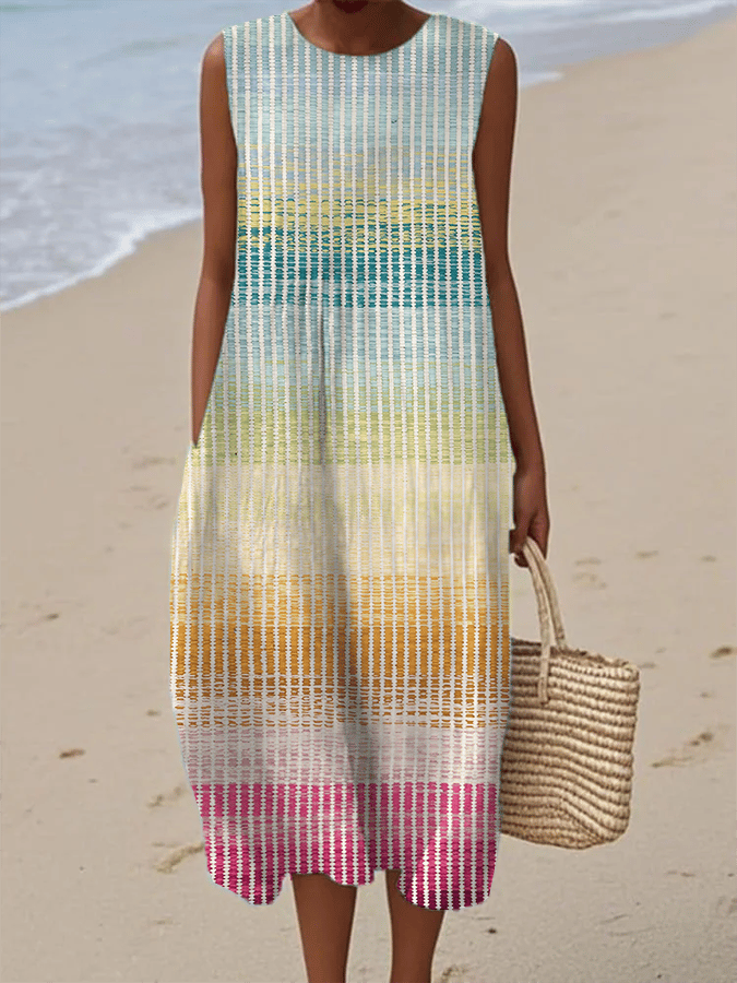 Women's Retro Gradient Stripe Print Dress