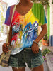 Women’s Retro Painting Riding Art Print V-Neck T-Shirt