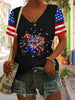 Women's V-Neck Flag Fireworks Independence Day Print T-Shirt