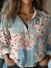 Women's Vintage Botanical Floral Art Print Lapel Shirt