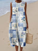 Women's Vintage Botanical Floral Patchwork Art Print With Pockets Dress